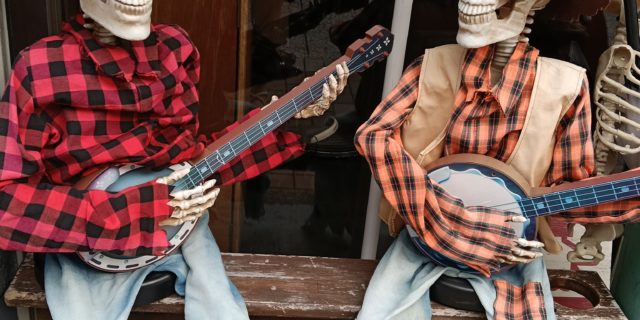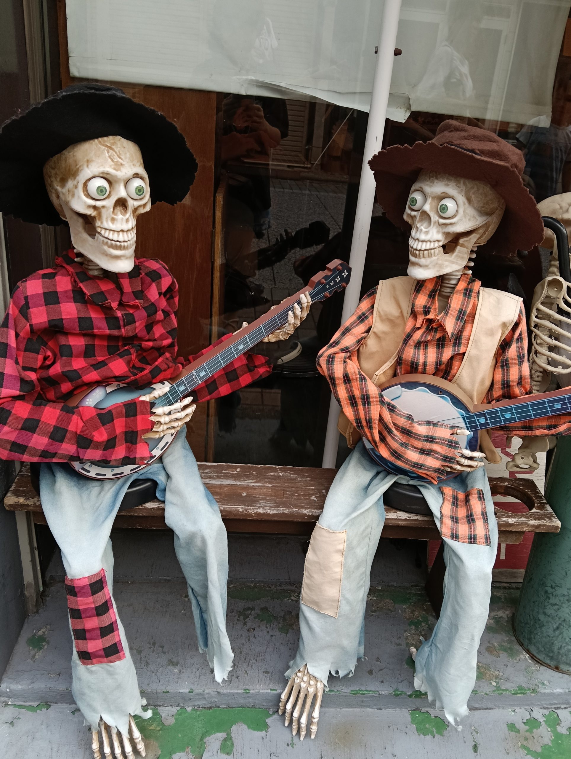 テーマは、ゾクッです。 カフェの前に座っていました。 ガイコツというのが、怖かったのでコレにしました。