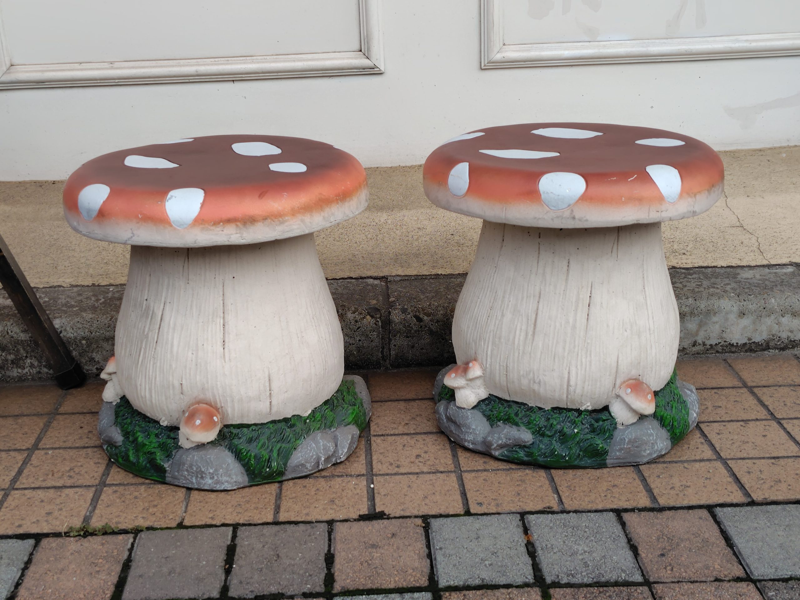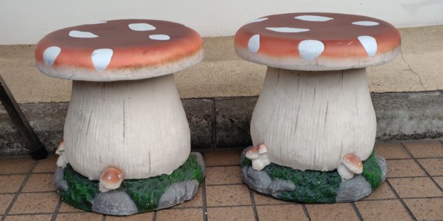大久保商店街のパンやさんの前にあったかわいいキノコのイス♪